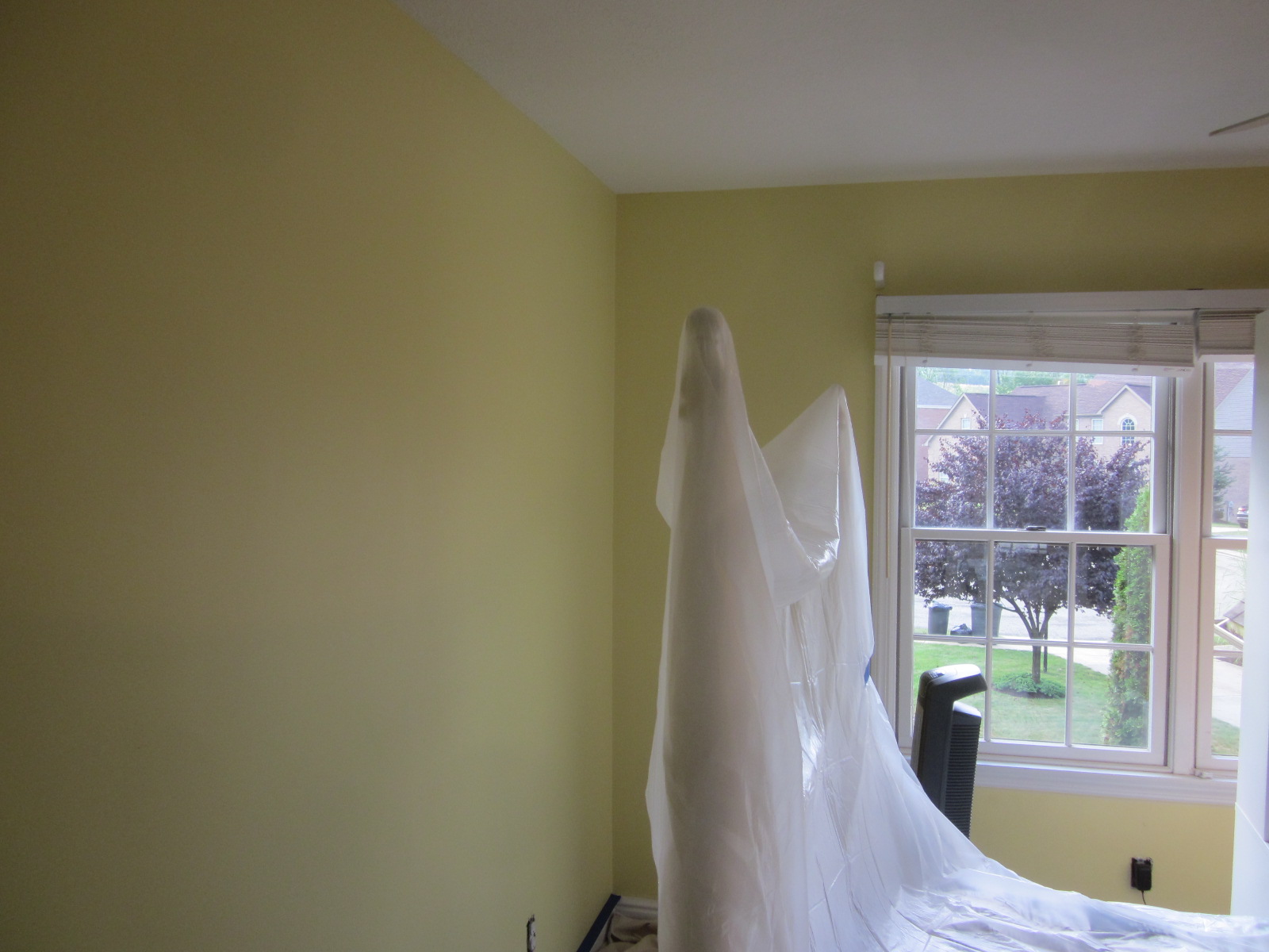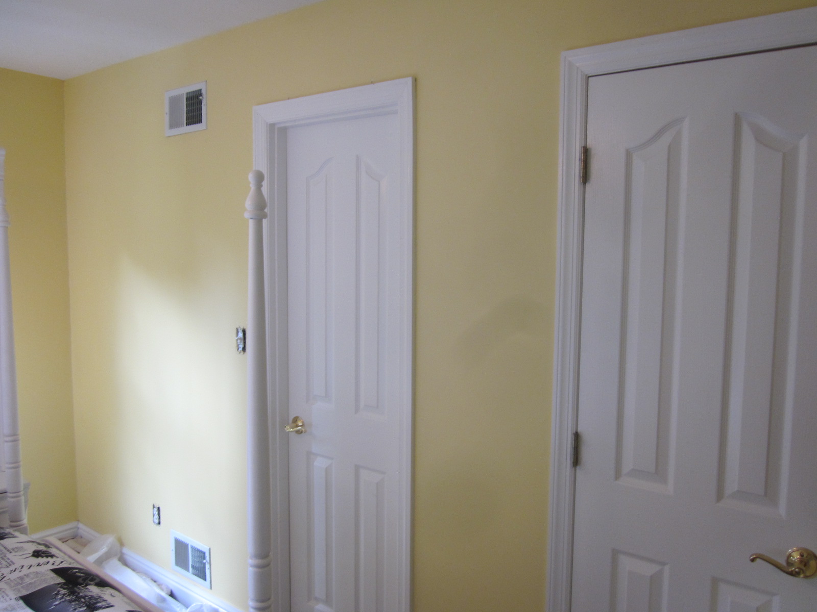 We started with yellow all over the place and quickly had the job underway. The big decision was this wall with white doors, trim, and wall. They thought maybe black doors would work. We offered a suggestion to wait and see what the wall looked like once it was all white.