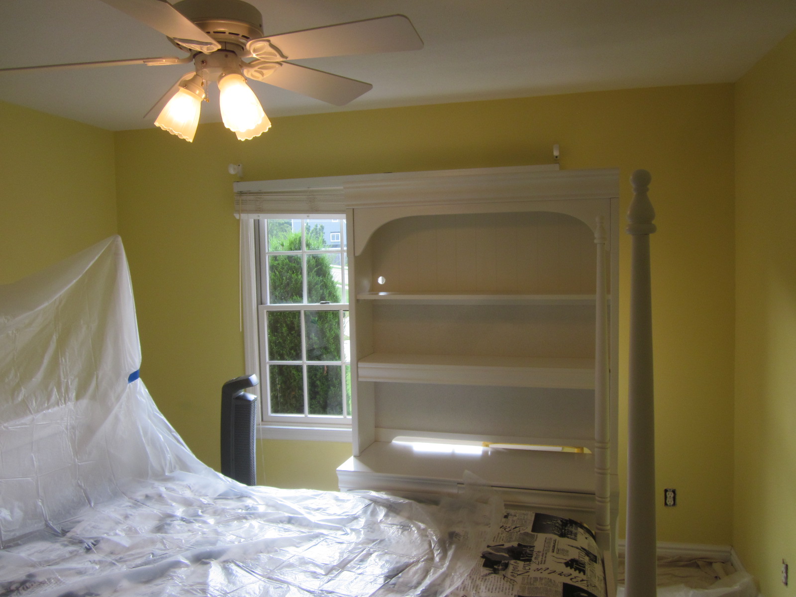 Here was the room just after painting, and then with wall hangings up.