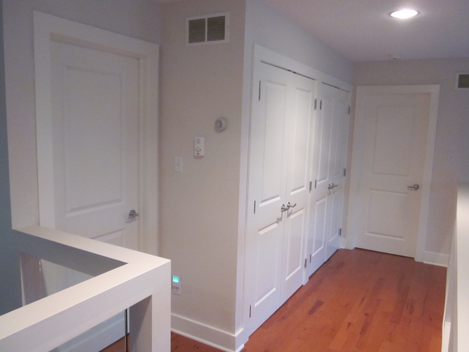 This is the one end of the hall with two bedroom doors, four closet doors, and all the trim.