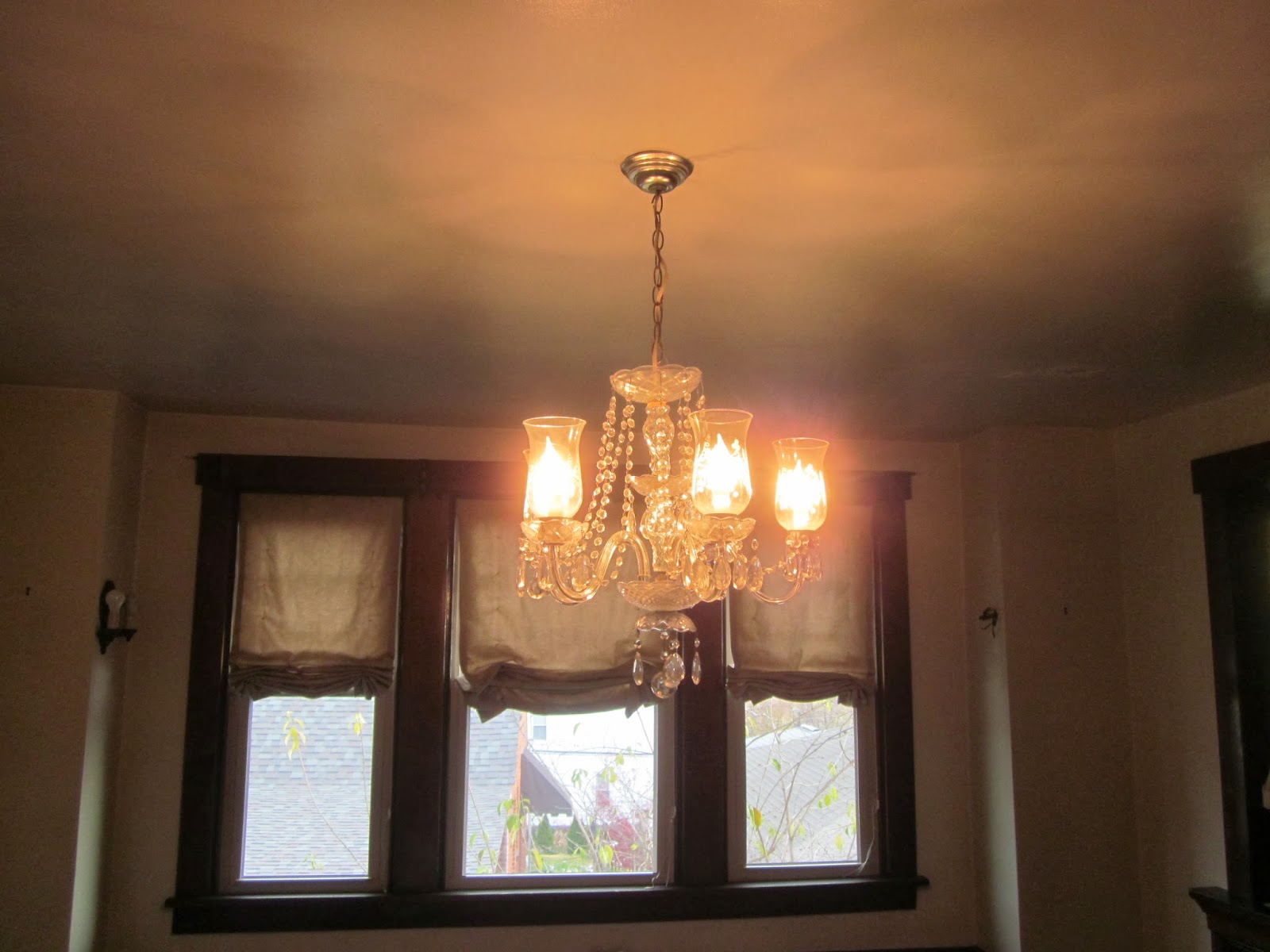 We had water damage on the ceiling and walls and old wall sconces which no longer worked. The one on the right wall was already removed. The old crystal chandelier needed updated and replaced too.