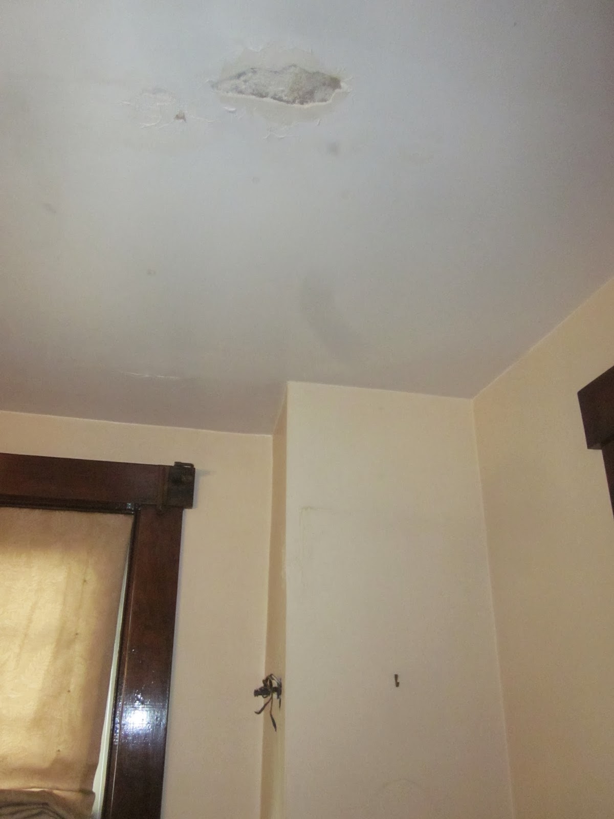 Here you can see more of the mess on the ceiling. Under the windows was another fiasco.