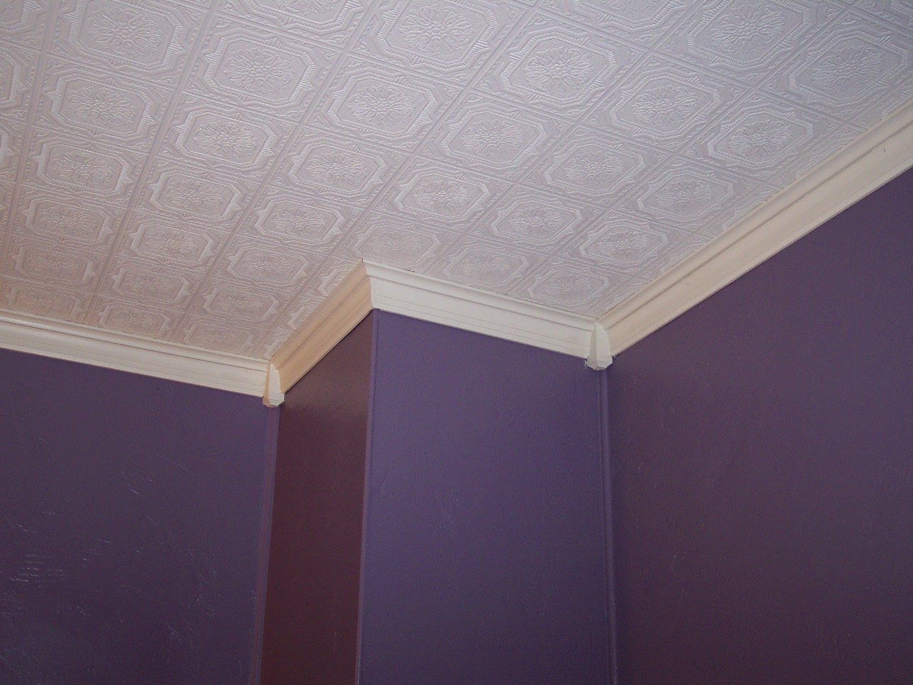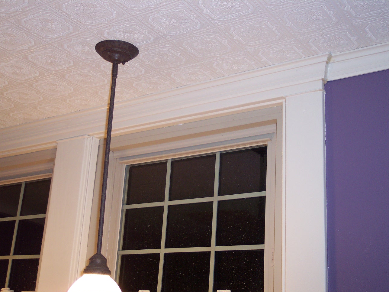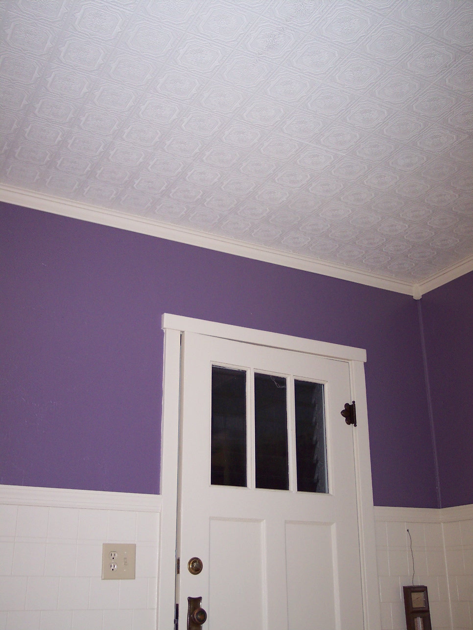 Here you can see the back door and trim painted, new outlet and light switch, new ceiling, and crown moulding.
