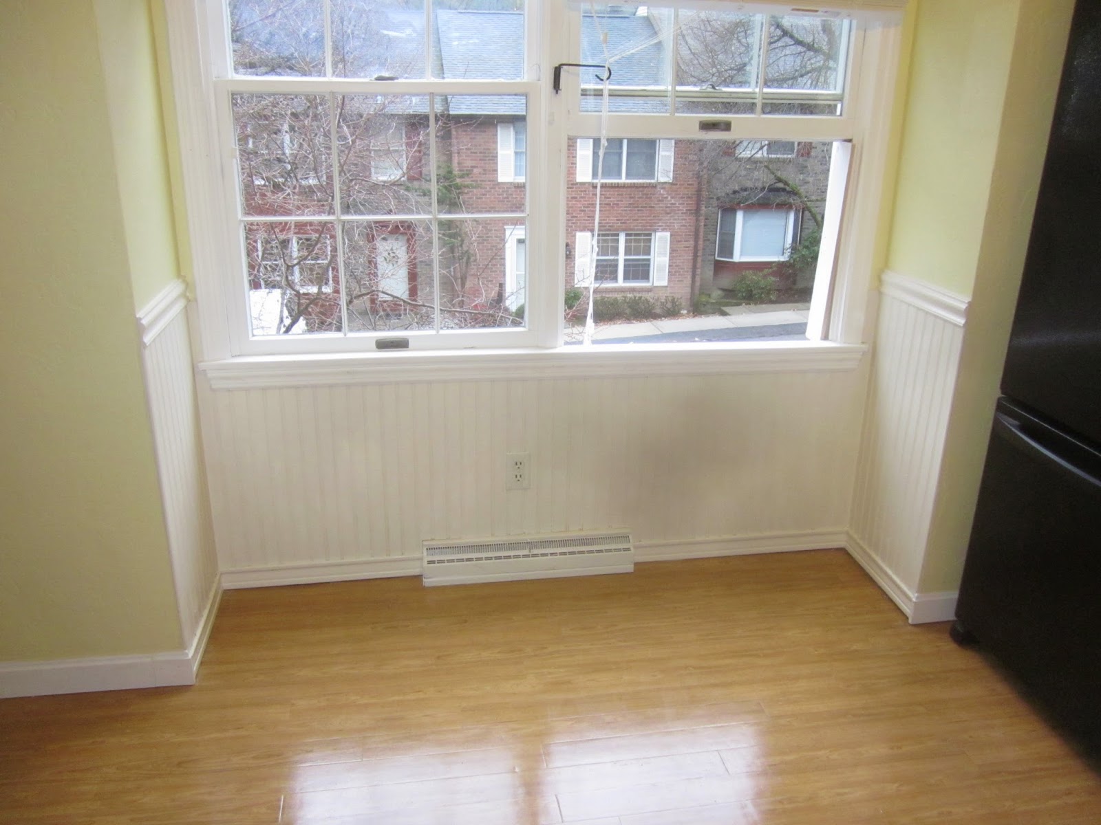 There were 3 different colors on the walls including the green here in the front window. The tile was also a mismatch with other parts of the kitchen, it was installed improperly and it was going to be another item to get removed. Framing around the doorways and front window area would all be removed too. The overall theme was to simplify.