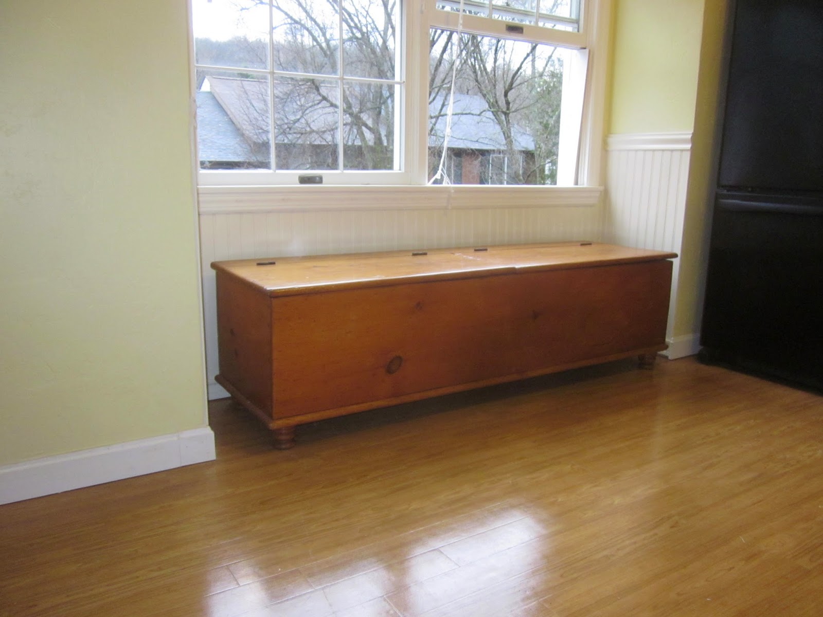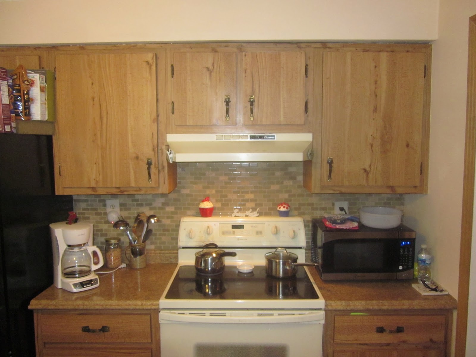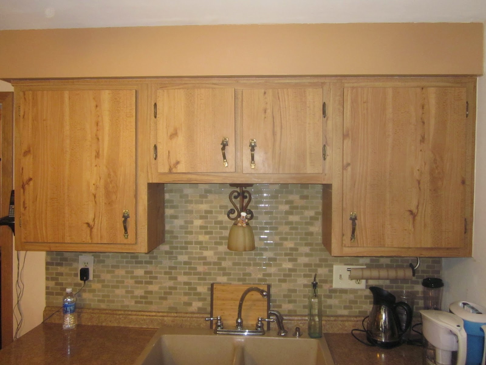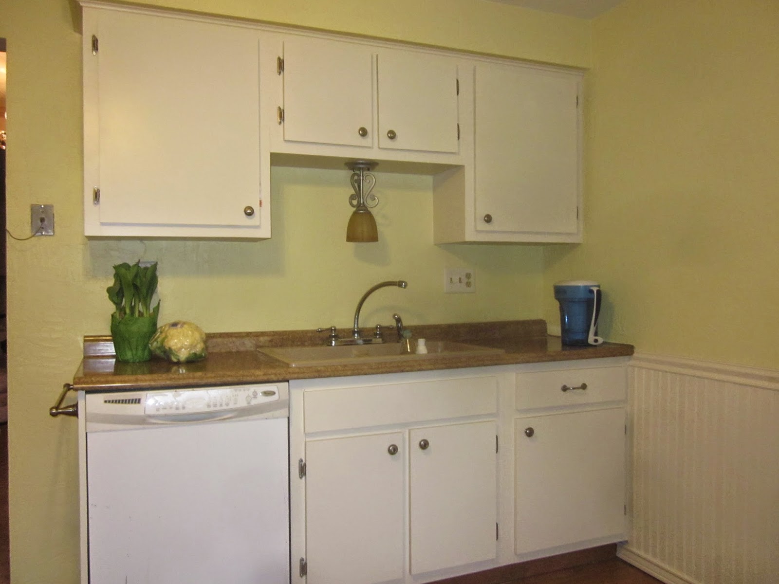 Here is the wainscoting on the right side of the finished cabinets. New hardware and hinges were also installed.