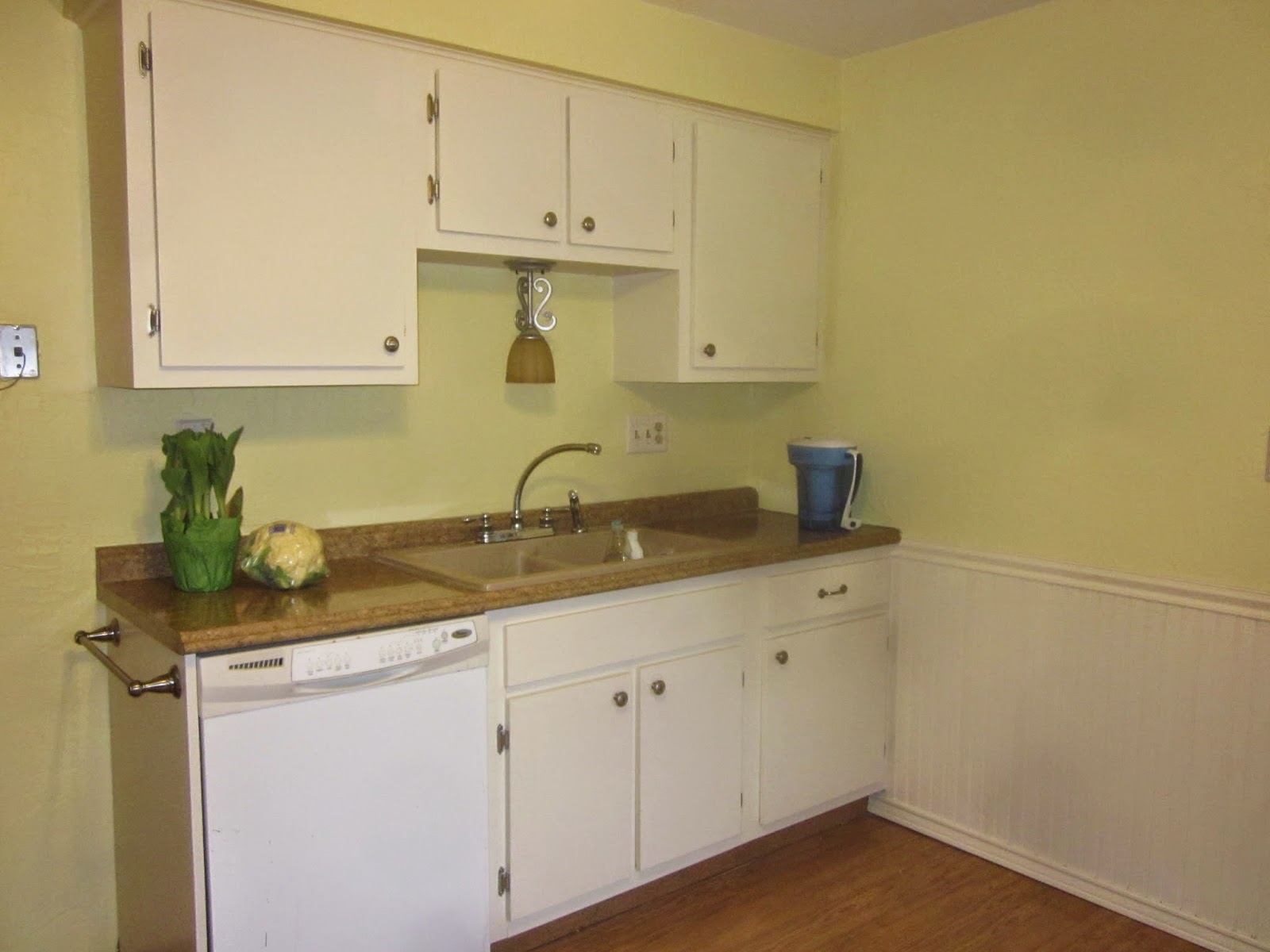 The doors were all removed and painted out of the kitchen. Base cabinets and drawers remained in the kitchen.