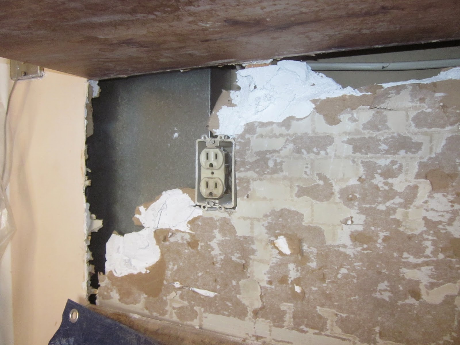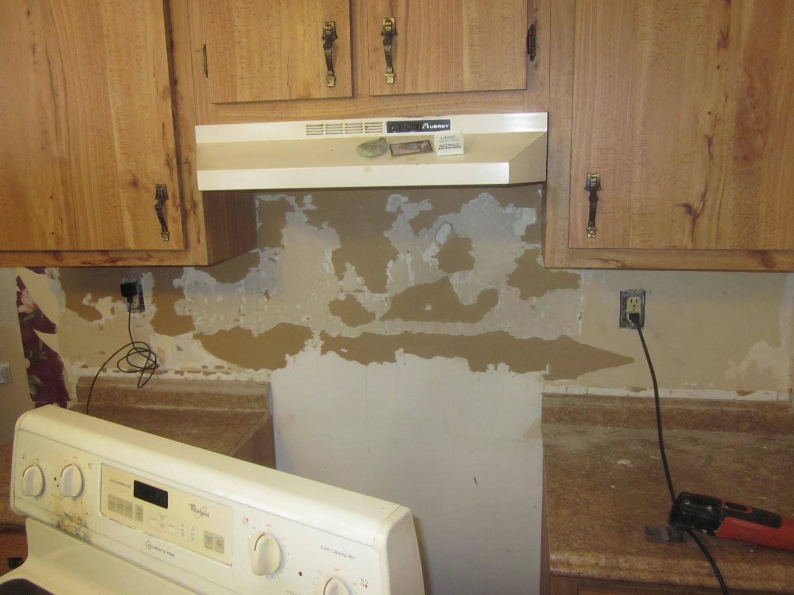 We started with removing the tile on the left side of the kitchen which didn't go to bad. On the other side we found wallboard installed with the tile wasn't supported on the edges, and when we tried to remove the tile the wallboard just broke apart.
