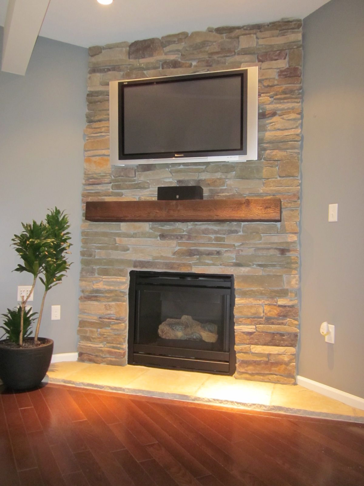 The walls were painted a beautiful slate gray, which worked well with the fireplace stones and the tile on the adjoining kitchen wall.