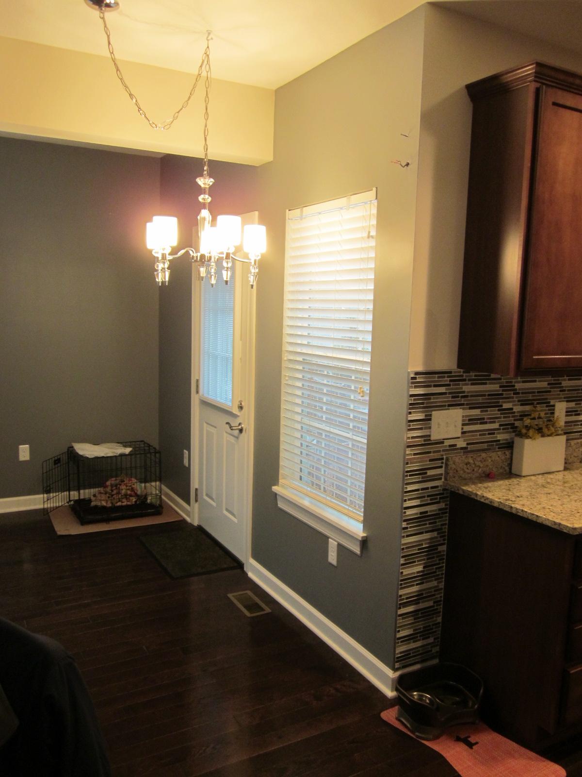 The dining are took a lot of additional prep but came out nice in the end. The Dining area had an accent wall also, sporting built in wooden doors with glass panes. As you can see, this wall was also painted with the red accent color.