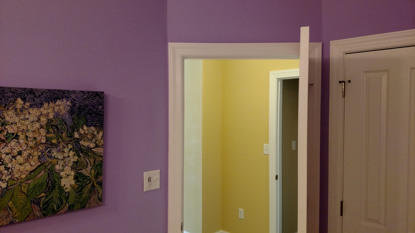 And lastly, this strong yellow bedroom contrasts wonderfully with the purple in the master bath. The artwork added to the walls after the paint dried pulled the colors together in a most amazing way. More to come in a future post on this residence. Enjoy!