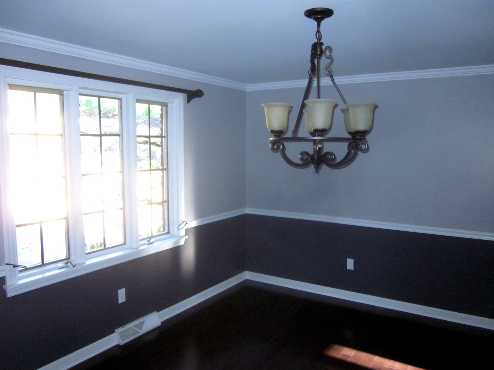 Here in the dining room, the grays work together and stand out on the white trim. (See more from this project on Facebook)