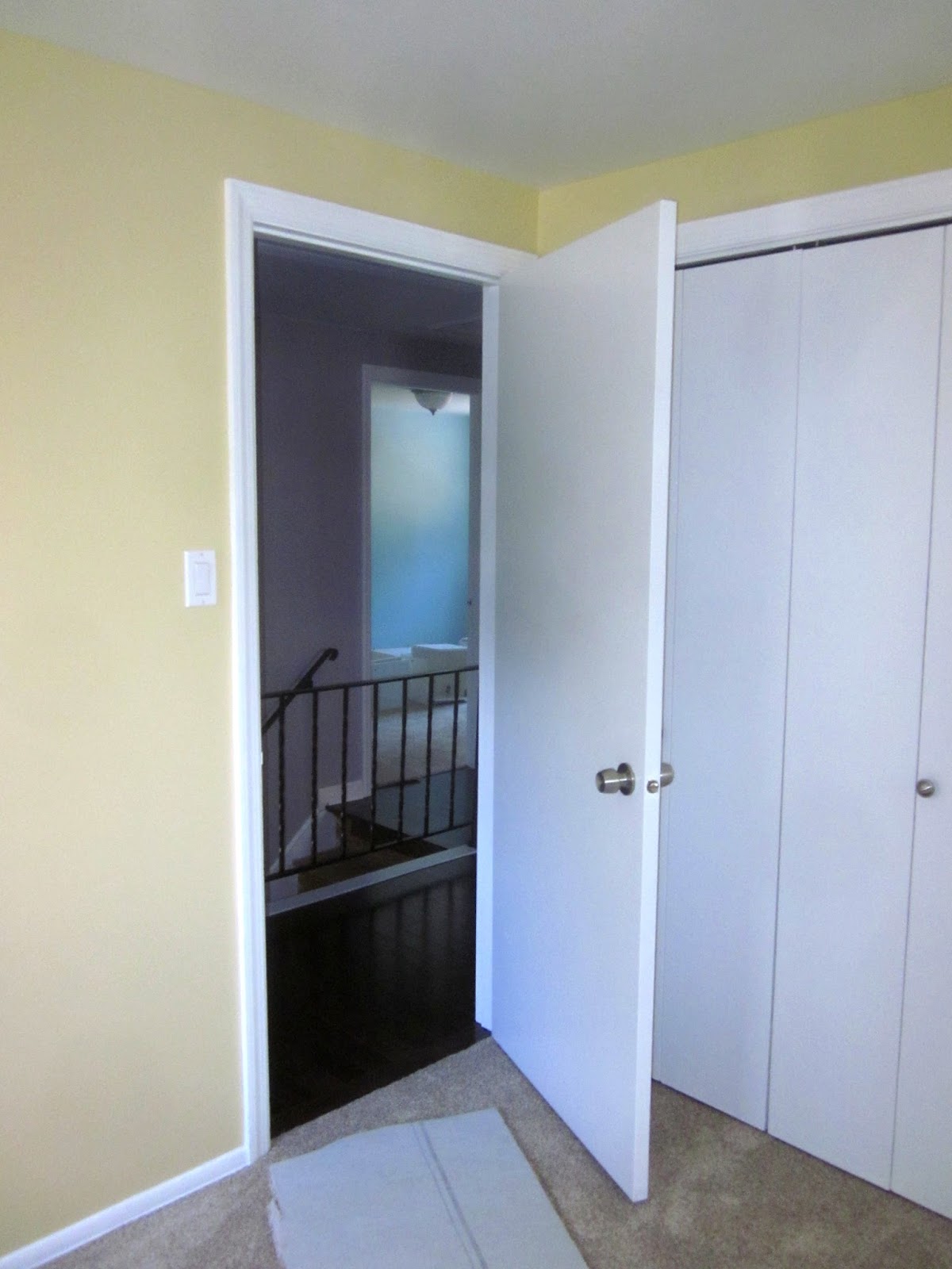 Grays can be bold, and accenting them with colors in connecting rooms can make a wonderful statement. Here we have a wonderful cheery yellow bedroom, gray hall and across the hall a turquoise bedroom. The Grays throughout this house blend beautifully with the few colorful rooms.