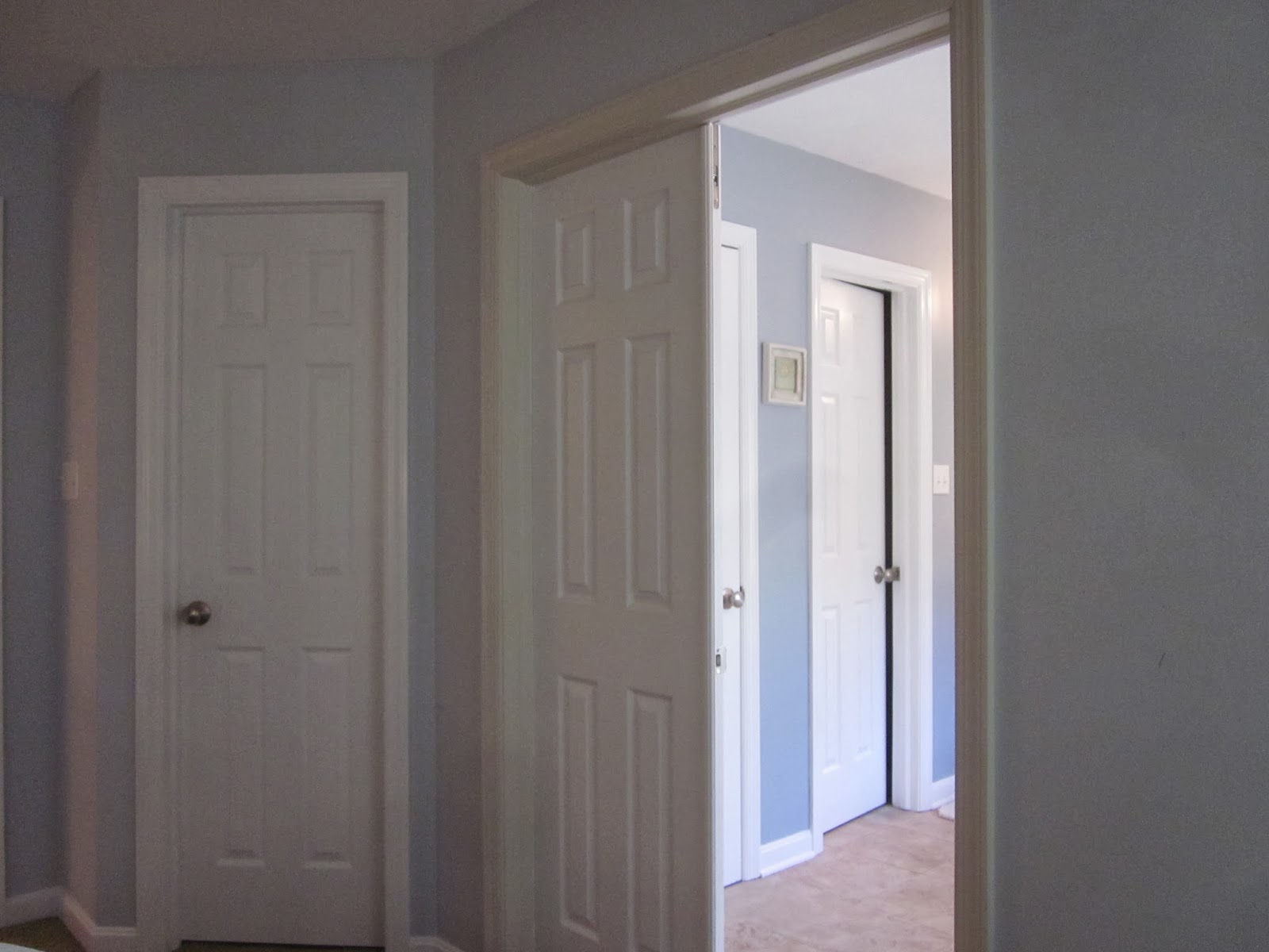 The top floor hosted a plethora of doorways. For painting, the doors were taken down and all the hardware on them and the door frames were removed. Then carefully carry them down the stairs, apply paint and tote back up once finished. Everything seems difficult at the outset, but the satisfaction of a completed project is joyous!