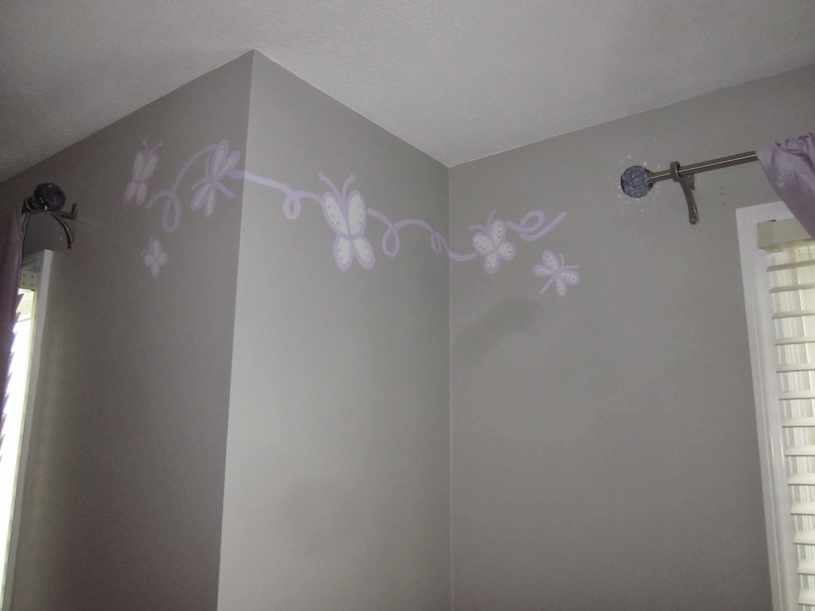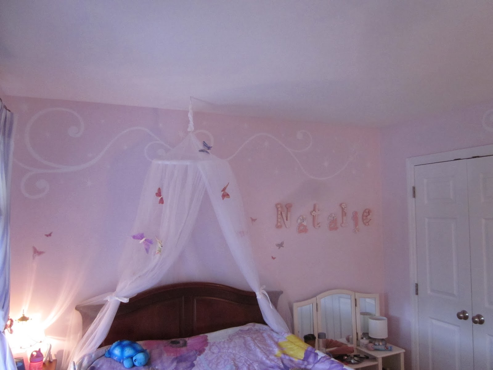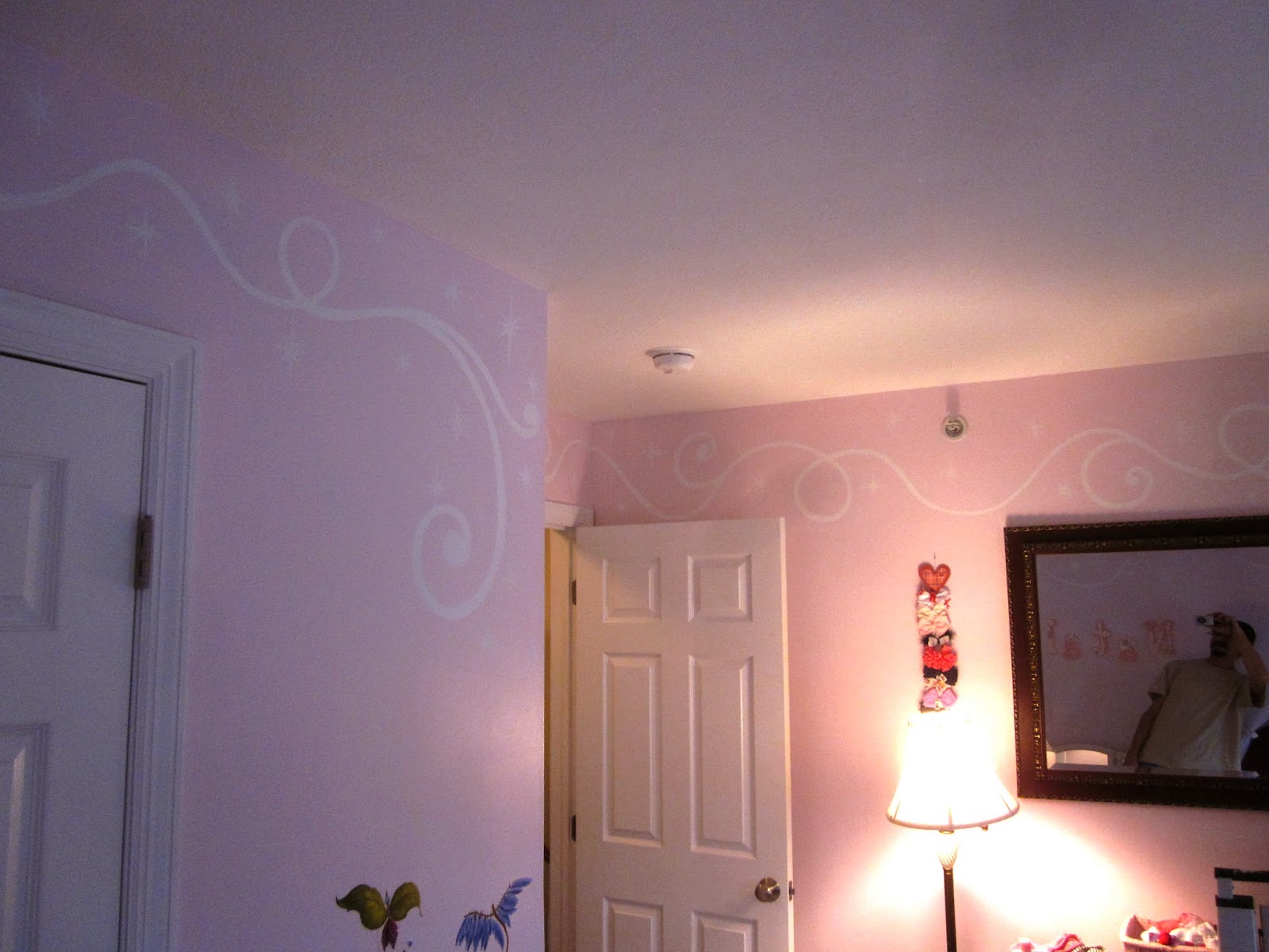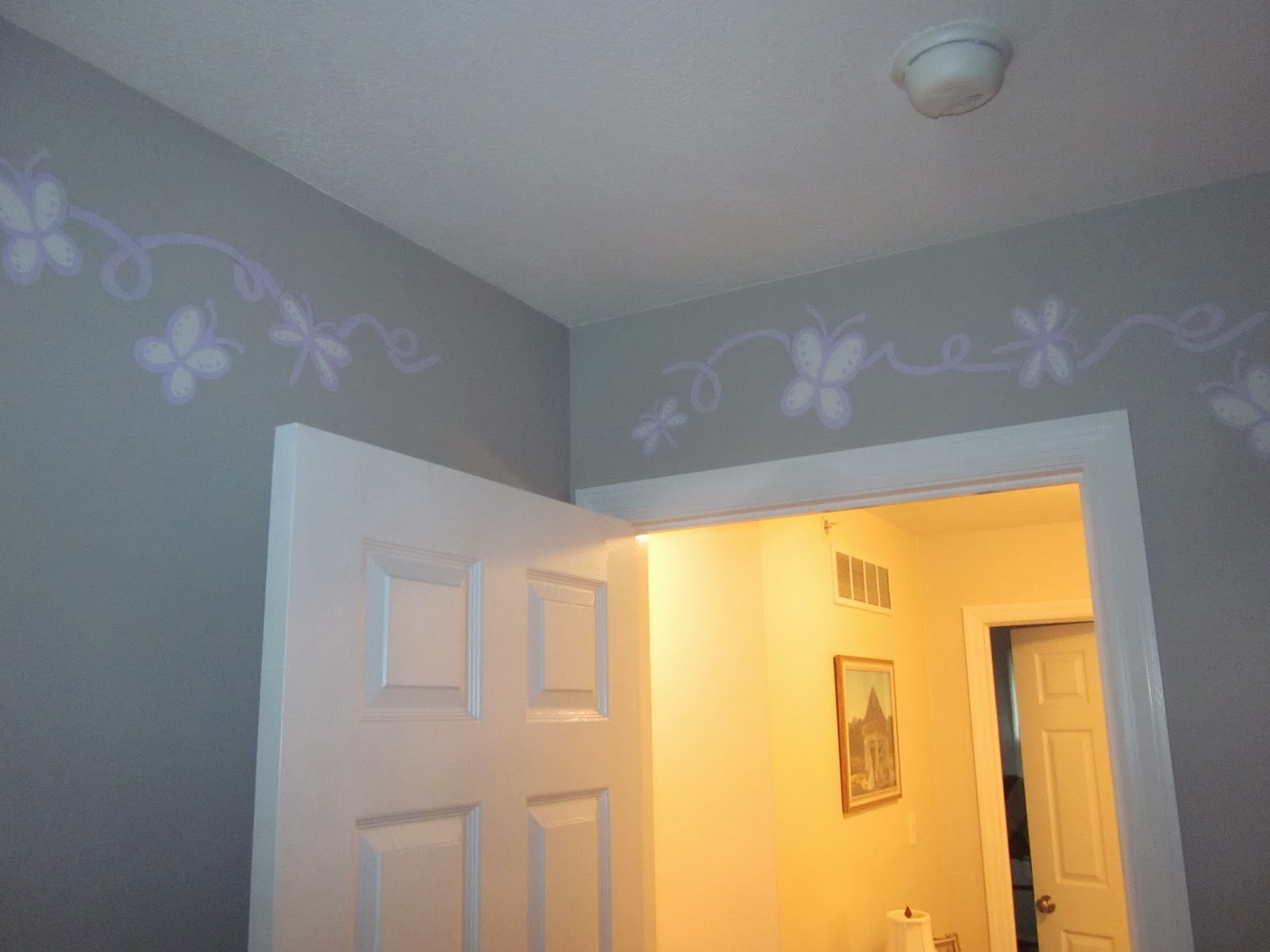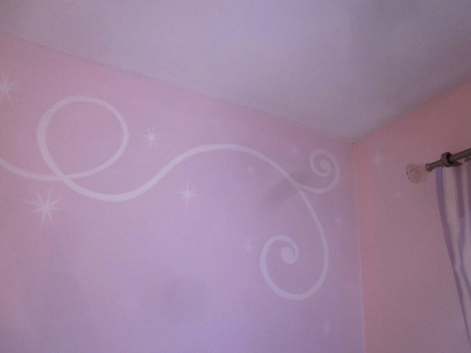 Then the fun stuff, borders in the kids rooms! Natalie received some fairy dust and swooshes in her room with a Tinkeresque fairy leaving the swooshing behind. The new babies room received a generous portion of butterflies and curls.