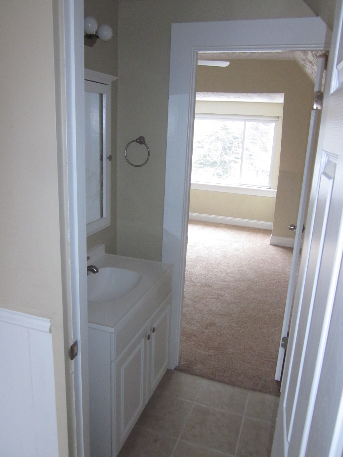 We installed all the bathroom fixtures, handrails, bi-fold closet doors, a dryer exhaust vent on the main floor, and Joe finished all the plumbing and hookups. We also emptied the basement, painted the rafters and ceiling, installed a new laundry tub and faucet, replaced the old doorway going under the porch, installed a couple bi-fold doors, finished walls, trim, and painted the floor.