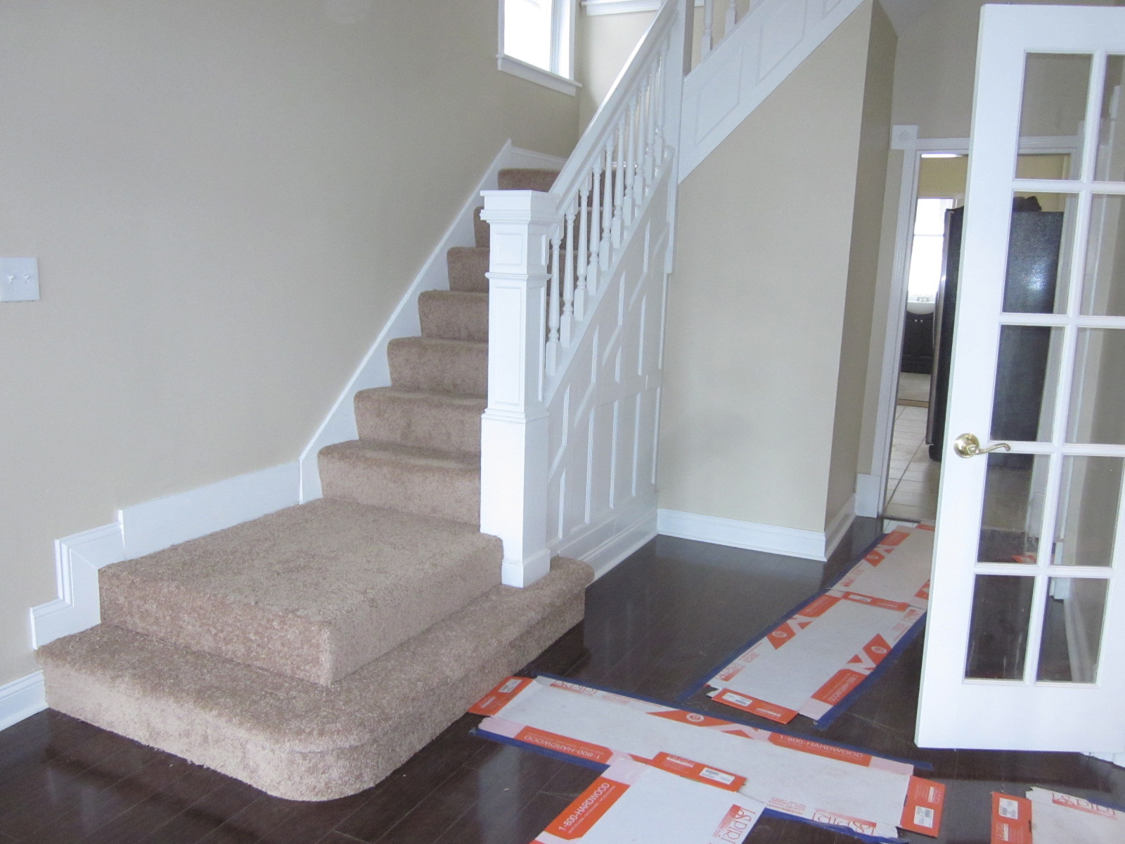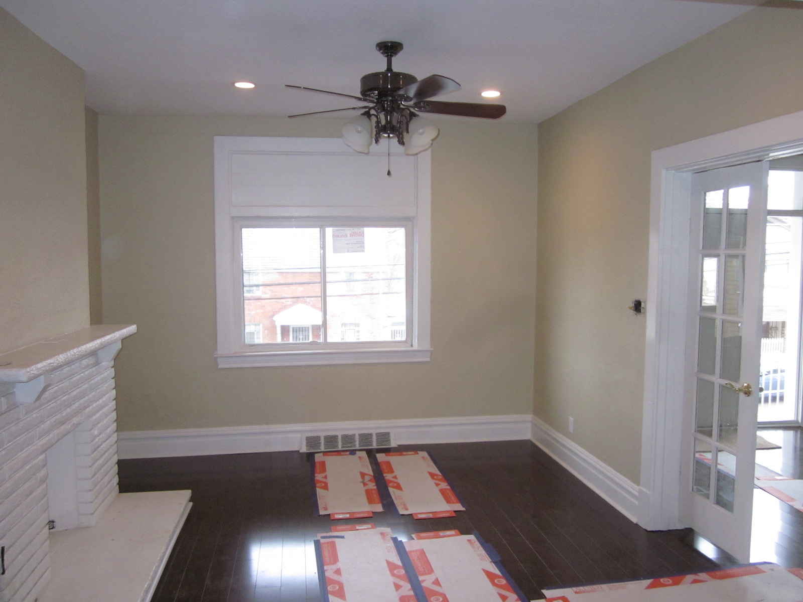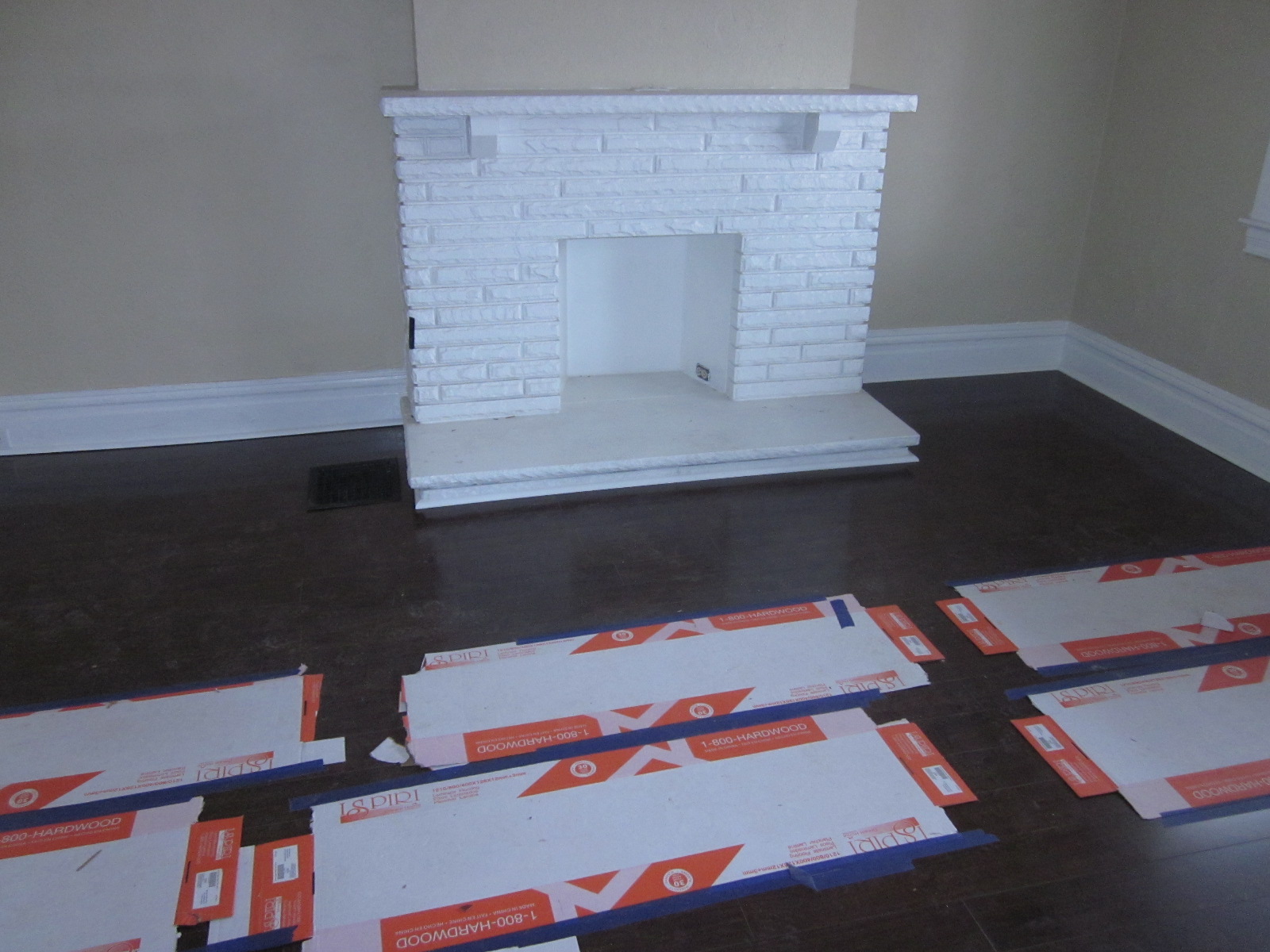 The living room, dining room and entry had new flooring installed by Scooter and then we did all the trim work and installed 3/4 round to finish it off. We also repaired, sanded, and painted the floor vents black to go with the dark flooring. Then there was all the last minute touch ups from the previous contractors banging the painted walls on the way out.